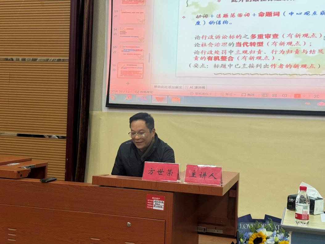 12月6日下午,欧美视频 在101学术报告厅举办学位论文选题与创新专题讲座。学院特邀中南财经政法大学方世荣教授主讲、海南大学谭波教授与谈,学院师生代表100余人参加。本次讲座由学院副院长刘伟琦教授主持。 方世荣教授作专题辅导报告 方世荣教授作为中南财经政法大学行政法学科的开创者与奠基人,深耕行政法学领域数十载,学术积淀深厚,论文指导经验丰富。报告中,他紧扣高校学位论文外审、抽查环节暴露的共性突出问题,从...