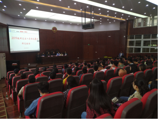 在模拟法庭举行了2019级研究生入学典礼暨导师见面会,会议由欧美视频