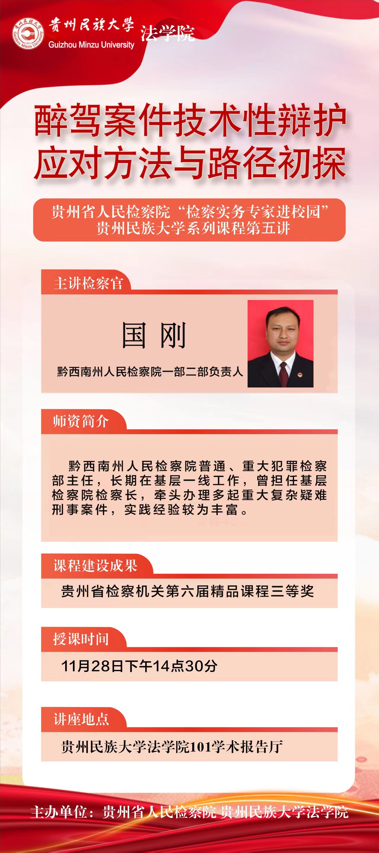 黔西南州人民检察院普通、重大犯罪检察部主任,长期在基层一线工作,曾担任基层检察院检察长,牵头办理多起重大复杂疑难刑事案件,实践经验较为丰富。
