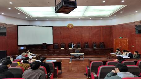 模拟法庭进行了一次全仿真审判活动。胡卫东老师出任点评嘉宾,对整个审判活动进行实务指导。