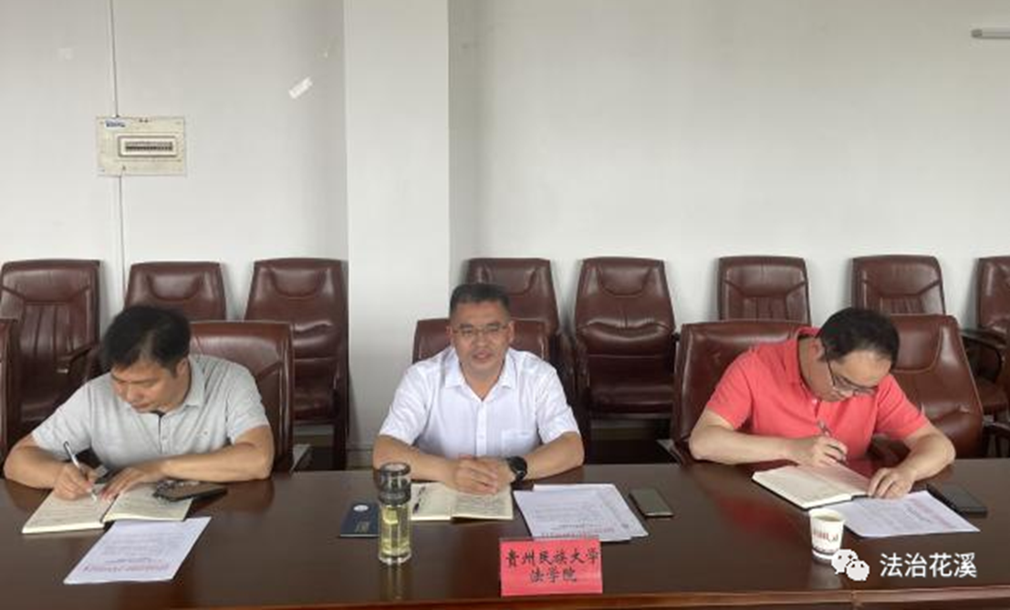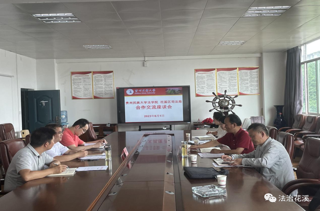 的基本情况。田景文局长介绍了花溪区在民主法治示范创建、公共法律服务、法治人才培养、社区矫正等方面的工作情况。双方就校地合作共建,推动法治花溪、法治政府、法治社会一体化建设,拓展理论研究领域、搭建法治人才培养平台等方面进行深度探讨,均表达出密切合作、优势互补、实现共赢的意愿。