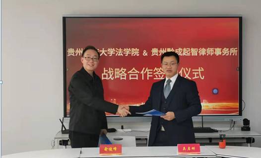 与贵州黔成起智律师事务所签订战略合作协议,并进行授牌仪式。俞俊峰副院长对贵州黔成起智律师事务所在法律人才培养及助力乡村振兴等方面的贡献表示高度赞赏,尤其是举办“普法表演队”、“民兵法理斗争排”等措施,在同类型律所中独树一帜,具有鲜明特色,彰显了作为法务工作者的社会责任与担当。