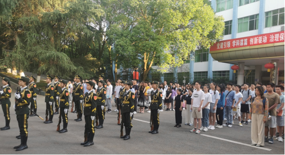师生在花溪校区行政楼前举行庄严的升国旗仪式。学院党委书记石世文,院长宋强,副院长俞俊峰,辅导员班主任及欧美视频