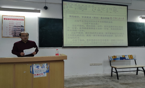 教工第二党支部书记杨 震博士以“中共党史成功的基本经验和规律”为题,给2020级法学2班同学宣讲党史。