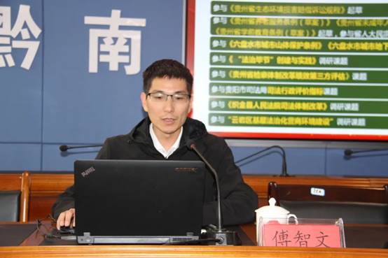 副教授、民法典贵州省百名专家学者资深律师宣讲团成员傅智文老师应邀为黔南布依族苗族自治州州司法行政系统队伍教育整顿政治轮训会,作题为《扎实推动民法典落地,系统推进法治贵州建设》的专题报告。州司法局局长、州司法行政系统党史学习教育暨队伍教育整顿领导小组组长骆紫光出席,州司法局政治部主任韦忠池主持报告会。
