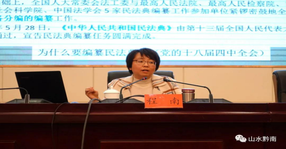 程南教授作民法典专题法治宣讲。宣讲会由黔南州法学会专职副会长、秘书长谭忠敏同志主持。黔南州州县两级“双百”活动组委会成员单位、法学会理事成员单位,以及部分人民团体、企事业单位、医院、高校等单位分管领导和业务负责同志参加了宣讲会。此次宣讲会以视频形式开至县级。