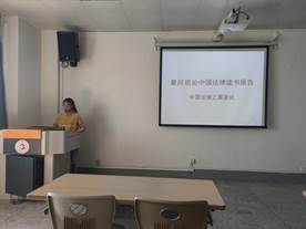 第一组负责人胡美琳同学分享的是“中国法律儒家化”部分,从何为法律儒家化,法律儒家化的开端、发展、结果、核心以及法律儒家化的优缺点进行一一讲解,让同学们大概理解法律儒家化的发展概况。