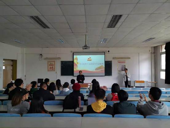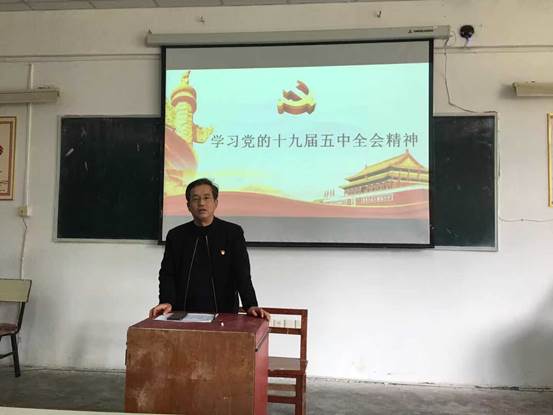 102教室召开支部党员大会,学院党委书记石世文同志作党的十九届五中全会精神的宣讲报告,支部全体党员参加。会议由支部书记杨 轶同志主持。