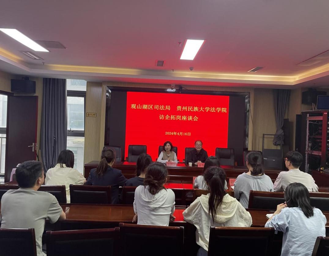 副院长(主持工作)俞俊峰教授到贵阳市观山湖区司法局开展访企拓岗交流座谈会。观山湖区司法局领导俞莎莉、欧美视频