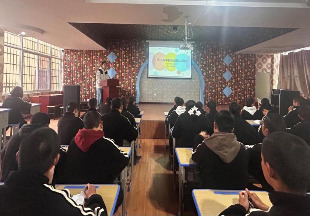 李桂源同学围绕《中华人民共和国民法典》中未成年人保护相关规定,从《中华人民共和国民法典》中的定义阐释、监护制度、收养抚养、侵权责任等方面,融入案例分析,通过解答未成年人相关法律疑问,播放预防未成年人违法犯罪系列宣传片,助力同学们增强法治意识,培养他们的规则意识和权利义务观念。